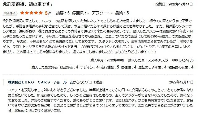 EURO CARS|お客様からのレビュー1