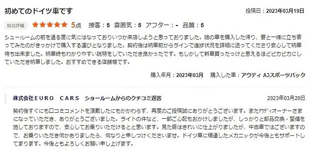 EURO CARS|お客様からのレビュー5
