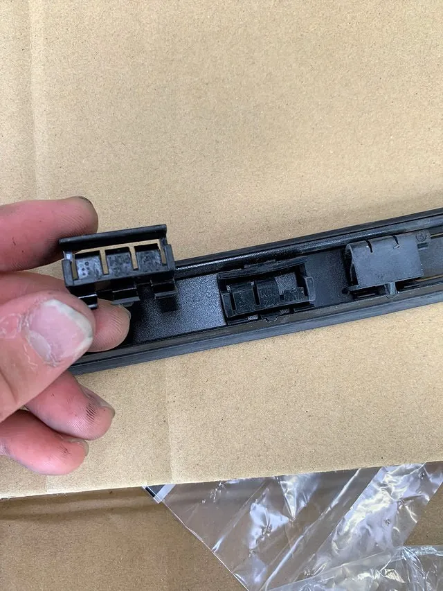 経年車ですので、日常の保管状態にもよりますが、フロントガラスのアッパーモール部分が劣化してきたようです。